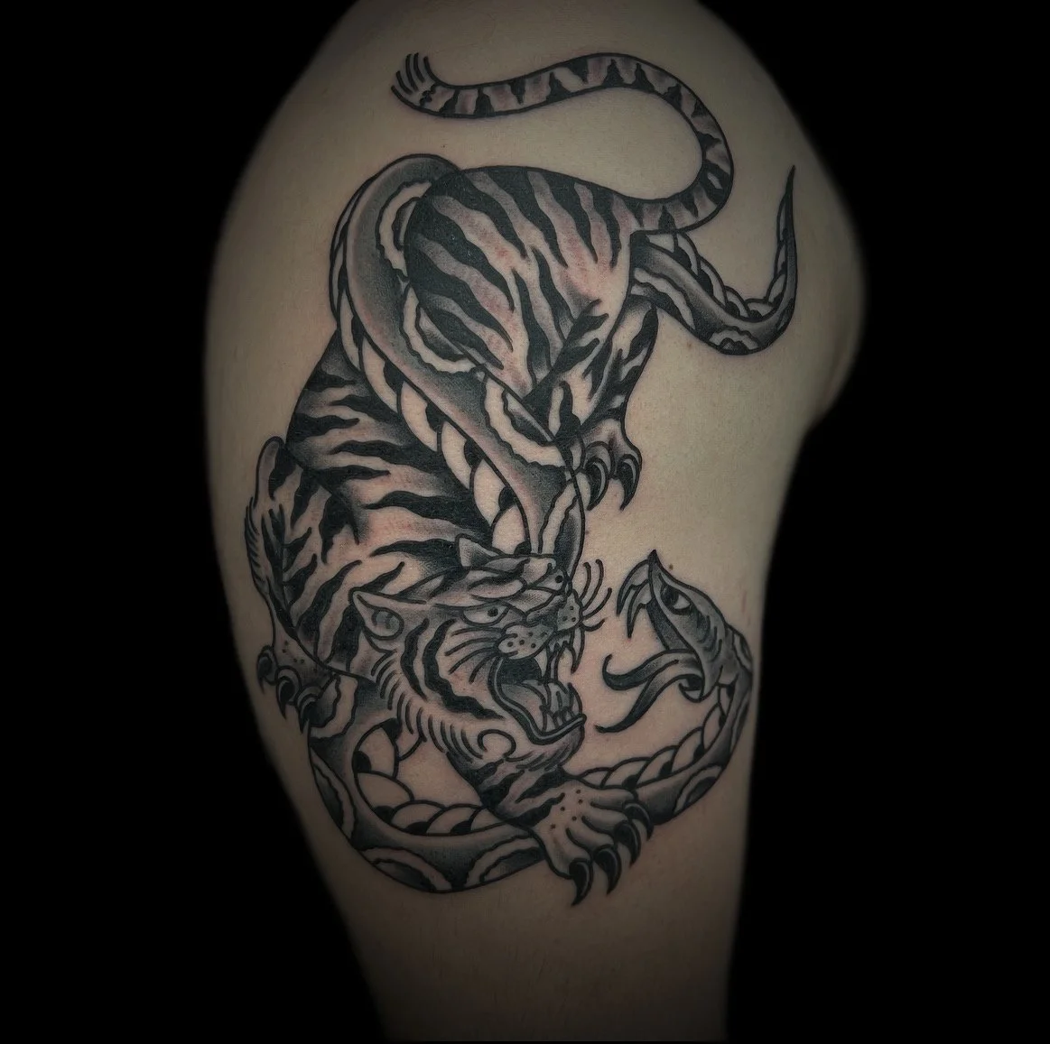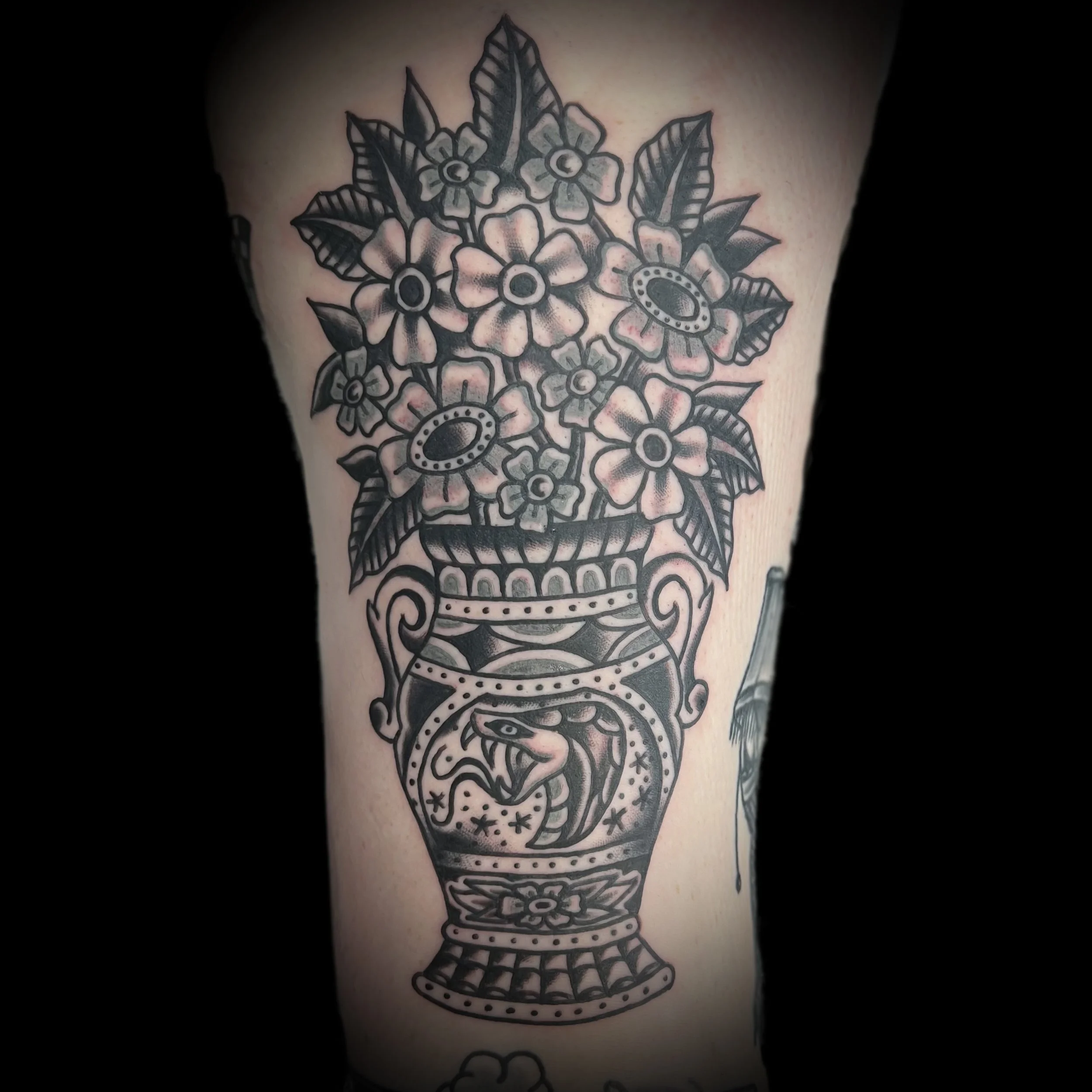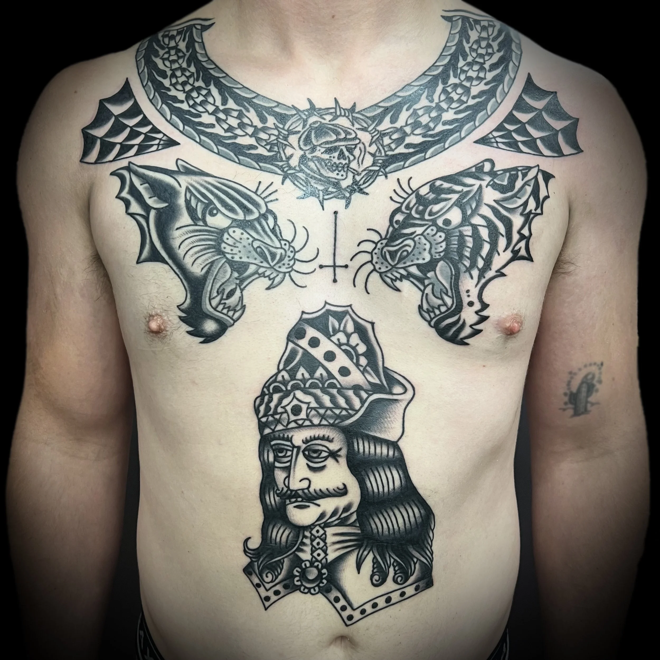 Andy is a professional tattoo artist with over 10 years of experience, specializing in bold, Black Traditional tattooing. Since starting in 2013, Andy has built a reputation for clean linework, heavy black shading, and timeless designs rooted in classic tattoo tradition. His work features iconic imagery—panthers, daggers, reapers, and more—crafted with precision and intention. Whether you're after a meaningful custom piece or a bold flash design, Andy brings care and quality to every tattoo. He collaborates closely with clients to ensure their vision comes to life, always aiming to create strong, long-lasting tattoos that look great for years to come.